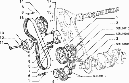 Ті шестерні, про які ти говориш на тому моторі -- це розподільчий вал та паливна помпа. А оберти від коліна передаються через блок шестерней, до яких одночасно під'єднані вакуумний та насос гідропідсилювача. Особисто я зрозумів, що проблема в ньому.