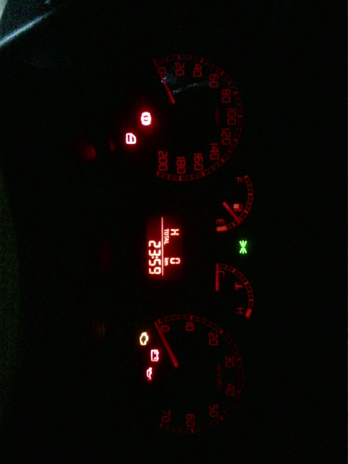 Запобіжники цілі, перевірив. Сьогодні після роботи пробував щолкати ключем і заводити глушити. Ввобщем табло таке і не моргає нічого, а буває що не працює тільки тахо.Що з тим робити і чому не висвітлює загальний кілометраж?