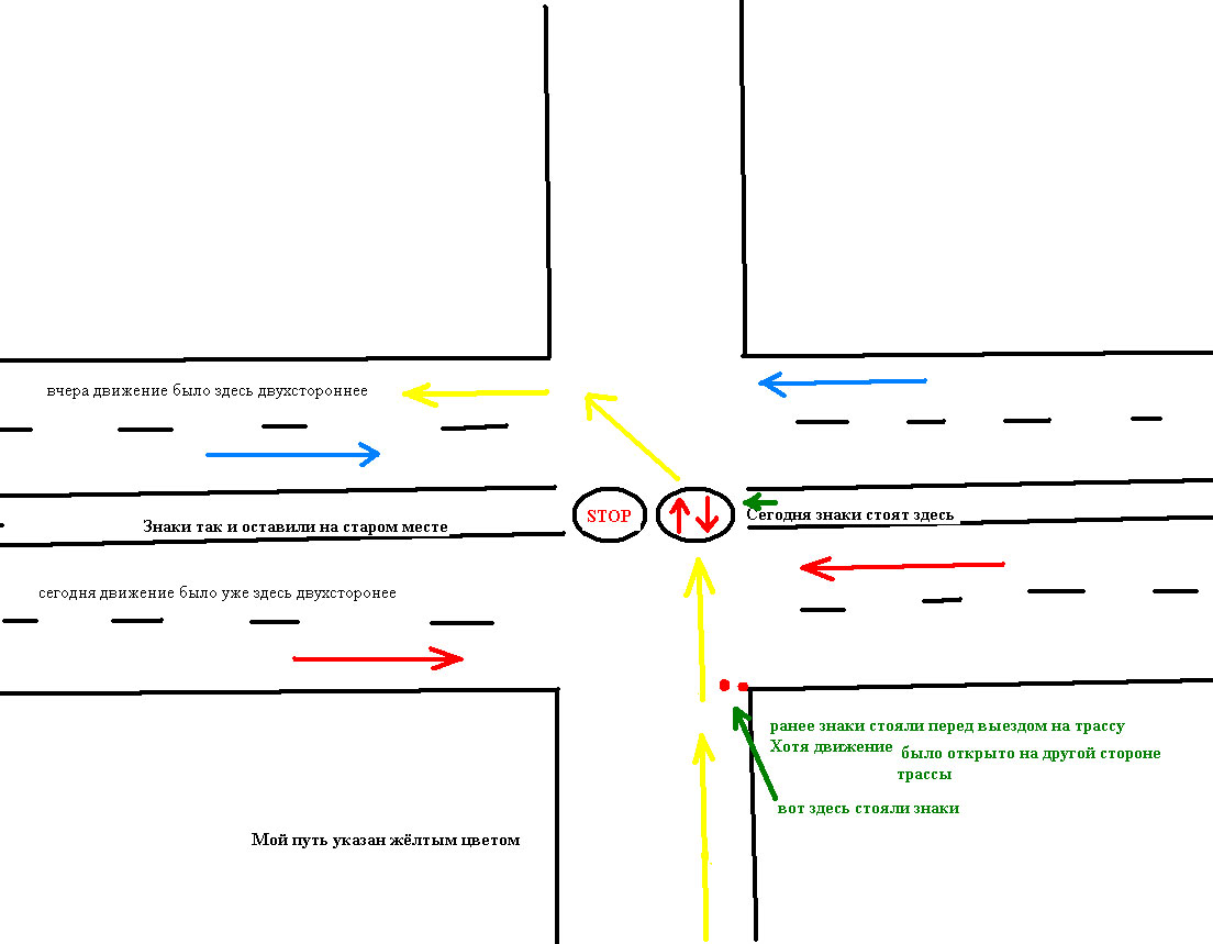 Что весьма примечательно, знаки ранее стояли на второстепенной дороге перед выездом на трассу в целом.