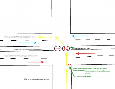 Между делом ментам я ещё рассказал, что на том участке вообще ни хрена не понять. Абсолютно не ясно куда ехать, где повернуть можно и нужно и тд и тп