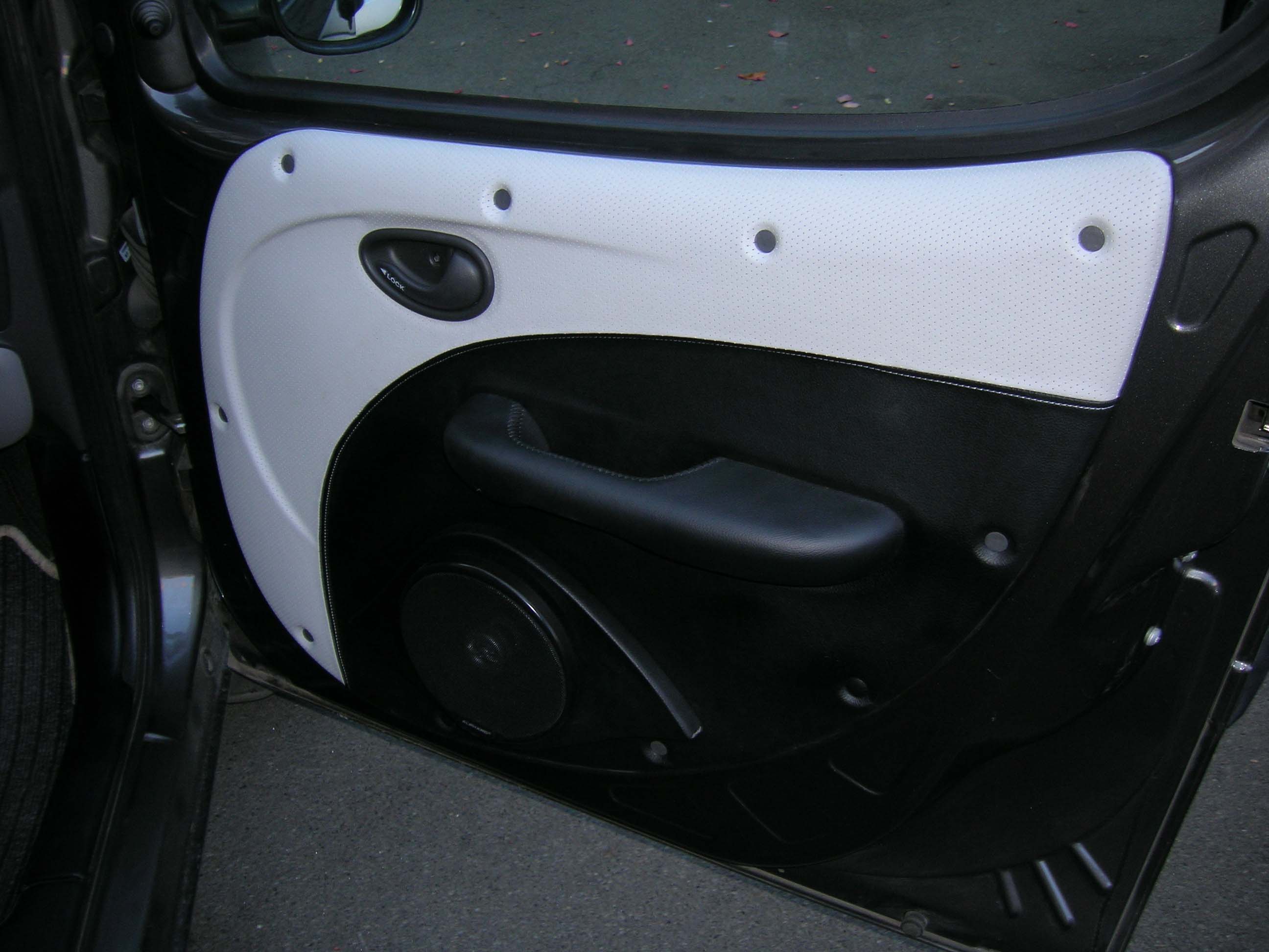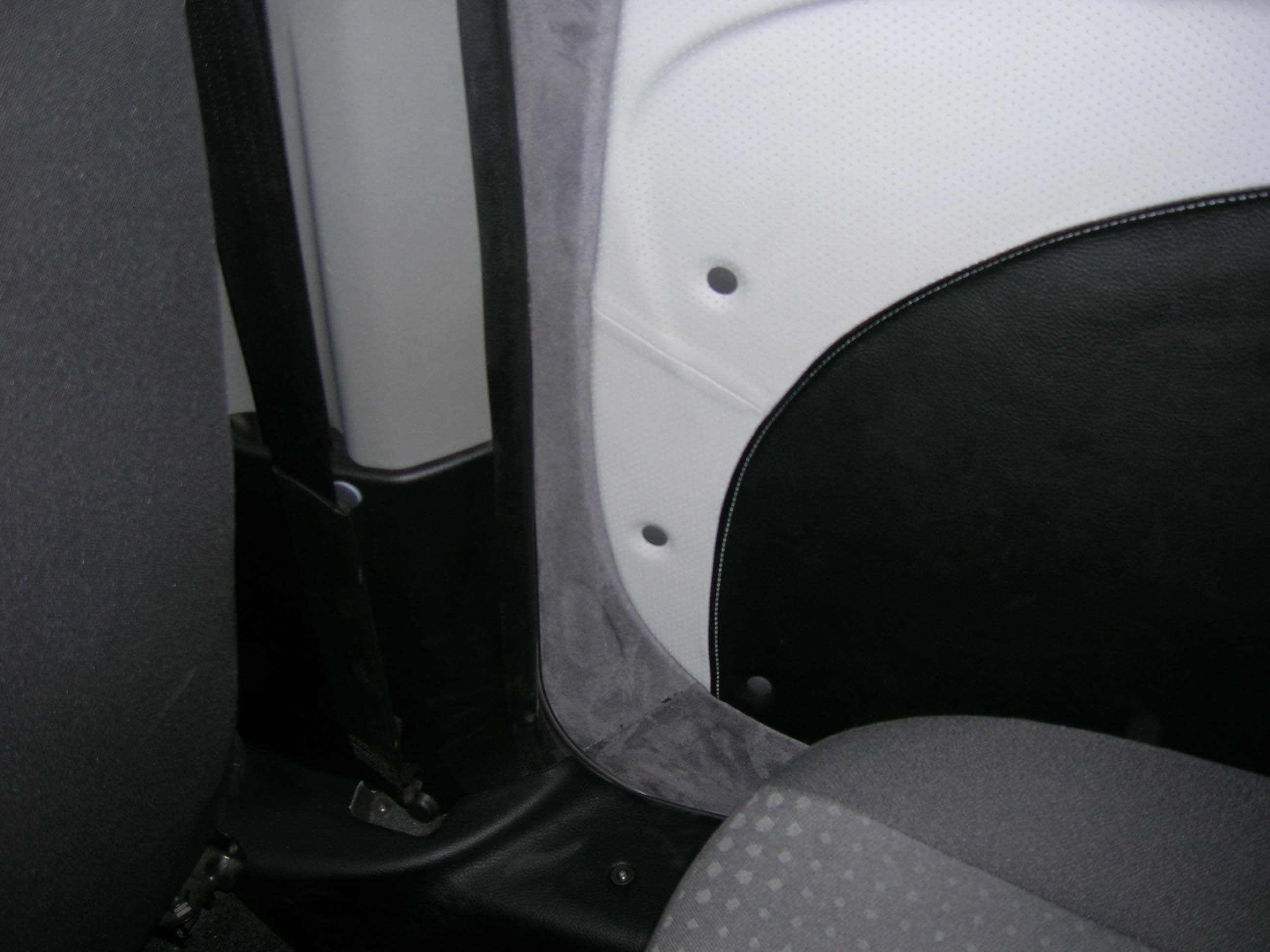 После покупки нового Добло год ездил и ни как не мог привыкнуть к железной банке с кошмарным потолком и дверными картами именуемыми в комплексе "салон Добло". Захотелось хоть как то привести его в порядок. Руль и дверные ручки обшили кожей, просто черной толстой мягкой кожей и все. Дверные карты, пороги внутри салона как спереди так и сзади обтянуты очень не плохим кожзамом. Потолок тоже кож зам - потолок, как по, мне получился просто выше всякой похвалы, естественно и обезшумлен и утеплен. На фото это трудно конечно оценить, но все же. Поставлены динамики, как в передние карты так и в багажник. Естественно и подиумы пршлось делать. Изначально планировалась полка, но багажник нужен в полном объеме. Багажник обшили грубым карпетом системы ковролин. Все железные фрагменты внутри салона обклеивали серым алькантаром, что то вилюроподобное. Скажу одно, сесть в машуну стало в разы приятнее.