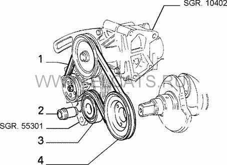 Всем доброго времени суток. Хочу убрать натяжной ролик ремня генератора. Двигатель 1.4,ремень бегает по коленвалу, помпе, генератору и ролику. Есть ли ремни которые будут бегать по трем из них? Подойдет ли ремень от двигателя с кондеем как на рисунке