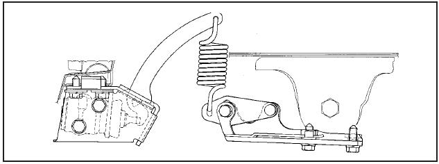 У мене перегнило кріплення пружини (на малюнку - знизу). Зняв весь той механізм і віддав на зварку. А пружину тимчасово прикрутив дротом. Тепер при натисканні на педаль гальма весь цей механізм не рухається, але колесо при цьому зупиняється. Скажіть, будьласка, він взагалі має ружатися? - і який приблизно має бути натяг пружини???