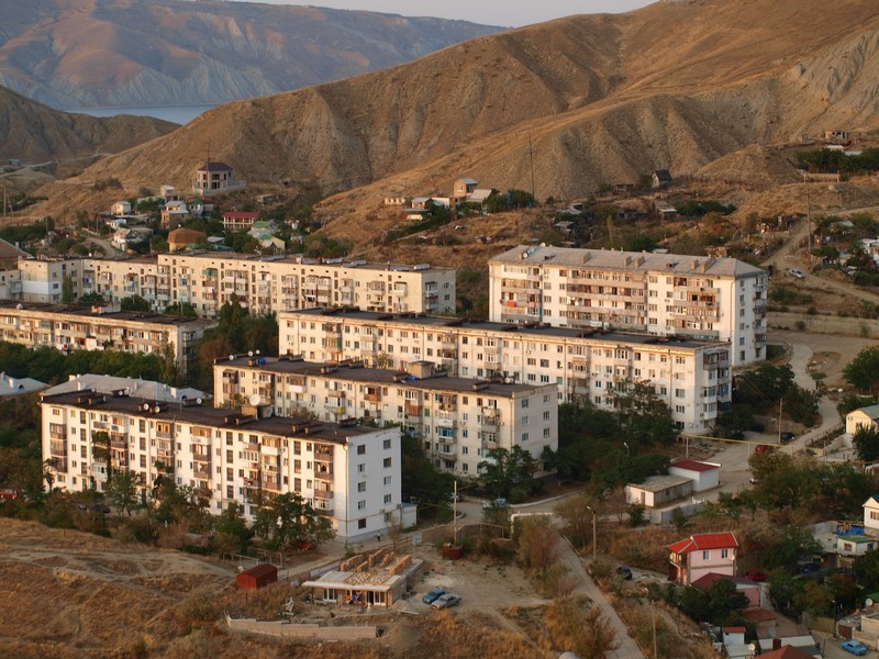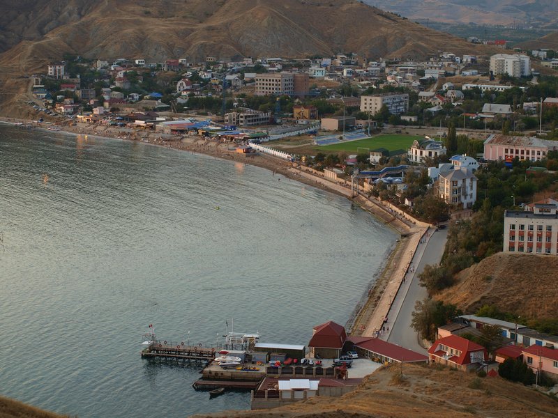 | Вид на пгт Орджоникидзе в горы Васюковки. Пляж. Набережная. |
