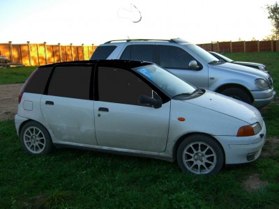 Попал в аварию 2 недели назад. Задел чудика, который начал движение не посмотрев в зеркало. Итог - минус левое переднее крыло, погнутый капот, бампер и поворотник. Было принято решение красить всю машину. Единственны минус - красили без сушильной камеры, зато очень и очень дёшево благодаря знакомтсвам. Попутно заварили отверстие под антенну на крыше, убрали все шильдики, кроме значка на капоте, закрасили все чёрные вставки в цвет кузова. Единственное - не поставили омыватели фар. Парни забыли сделать отверстия в бампере под них, когда машина была в грунте, а теперь говорят лучше подождать месяцок, чтобы краска окончательно легла, и уже сверлить. Получилось просто замечательно. Машинка сияет. Very Happy Спешу поделиться своей радостью. Наконец-то снова за рулём Пунто! Driving Вот фотки. Yahoo!