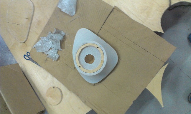 На 2 форме использовал плетеное стекловолокно(типа карбона зачязано), что дало возможность слепить форму за 1 пресет. в 1 слой получилось ровнее, красивее, и достаточно прочно. Кстати лепилось все на обычную футболку из секонда, натянутую и схваченую степлером.