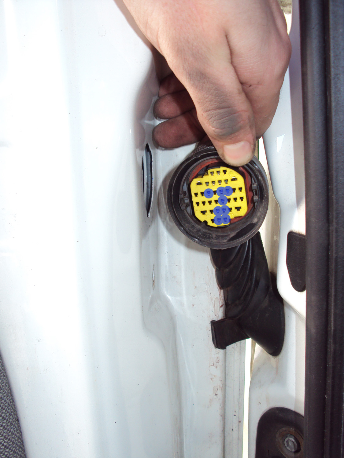 просто разсверди разъём в двери и просунь туда провода от мафуна. Хлопотно, но работает отлично. У меня так заходят и динамики и подогрев зеркал самоклеющийся. Думаю ещё делать подсветку в ноги через тоже отвестие что разсверлил