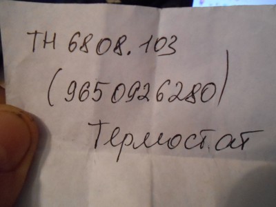 Погрешил на термостат, решил начать с его замены. Однако, у ОД он стоит 2000 грн и я подался на рынок на Перова. Но у продавцов мнения разделились. Одни рекомендовали "вставку" за 300 грн. (4 варианта разной формы наконечника, другие - термостат в сборе с корпусом и каким то разъёмом за 900-1200 грн. Даже его номер на бумажке написали, когда у них его не оказалось (фото)