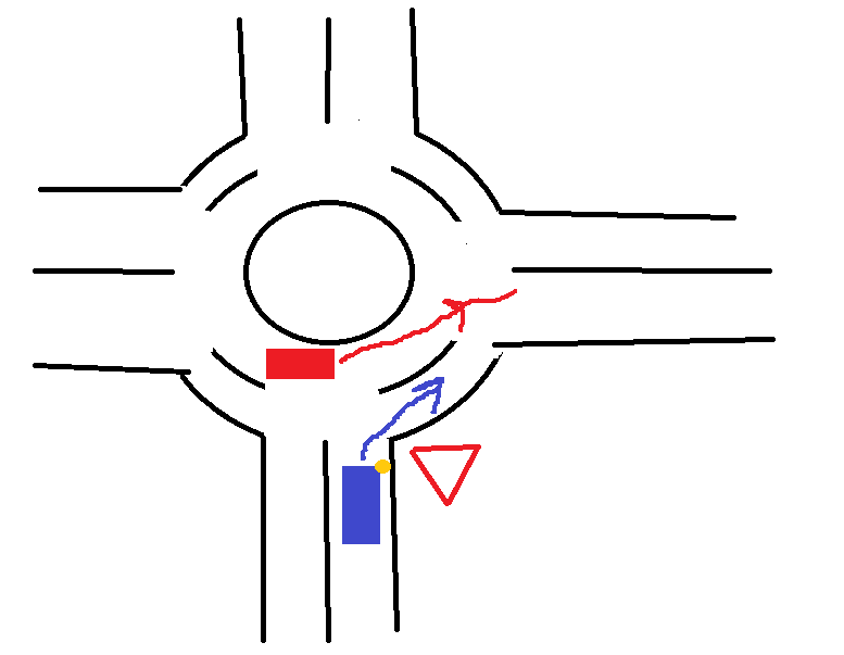 Схема статичная, по хорошему надо рисовать или гифку или двумя картинками - синий уже въехал на круг, а красный решил пересторится.