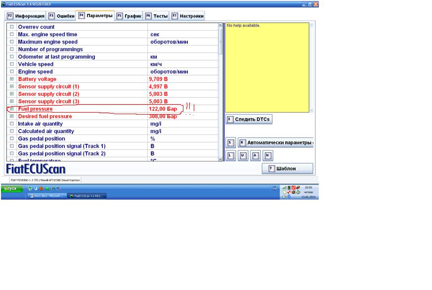 Ссмотреть надо давление топлива а не газойля. У меня заводилась при достижении давления 122-130 bar(атм.)см.рис. Люди говорят что нужно 140.