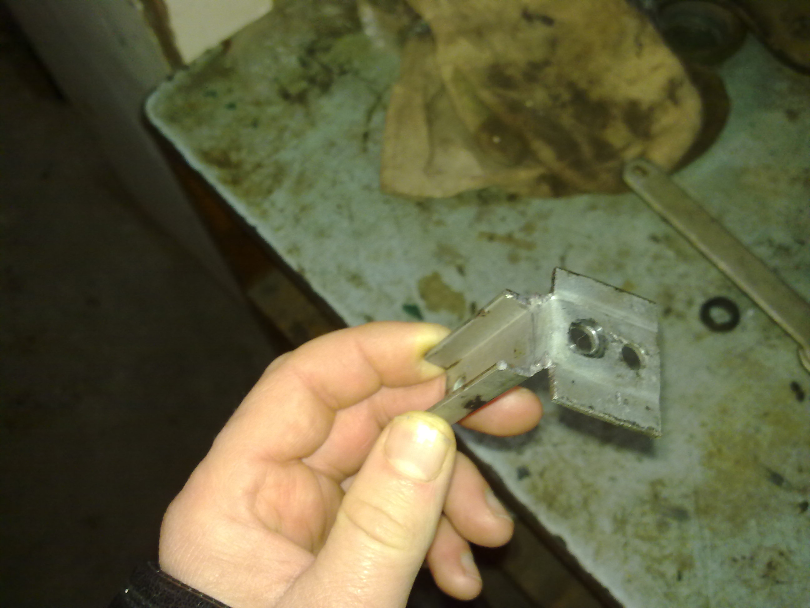 Чтот у меня не получился такой.. Согнуло его нахрен. Наверное метал тонковатый взял. Я из круглого прутка сделал, зацепил за балансировочное отверстие. Конечно, фонарь одноразовый, но гайка открутилась, теперь закрутить бы ее