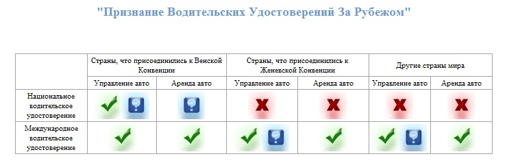 Чем же отличаются требования к международному водительскому удостоверению Женевской и Венской Конвенции? Все поля, которые требует Женевская Конвенция, присутствуют и в международном водительском удостоверении, которое удовлетворяет требованиям Венской конвенции. Также Венская Конвенция не обязывает переводить водительское удостоверение международного образца на китайский и арабский языки. Отличие во вносимых данных заключается лишь в расположении некоторых полей. Именно потому что требования к международным водительским удостоверениям в Венской и Женевской Конвенции одинаковы, а отличается только расположение некоторых полей, международные водительские права, удовлетворяющие требованиям Венской Конвенции о дорожном движении, признают почти все страны, подписавшие Женевскую Конвенцию.