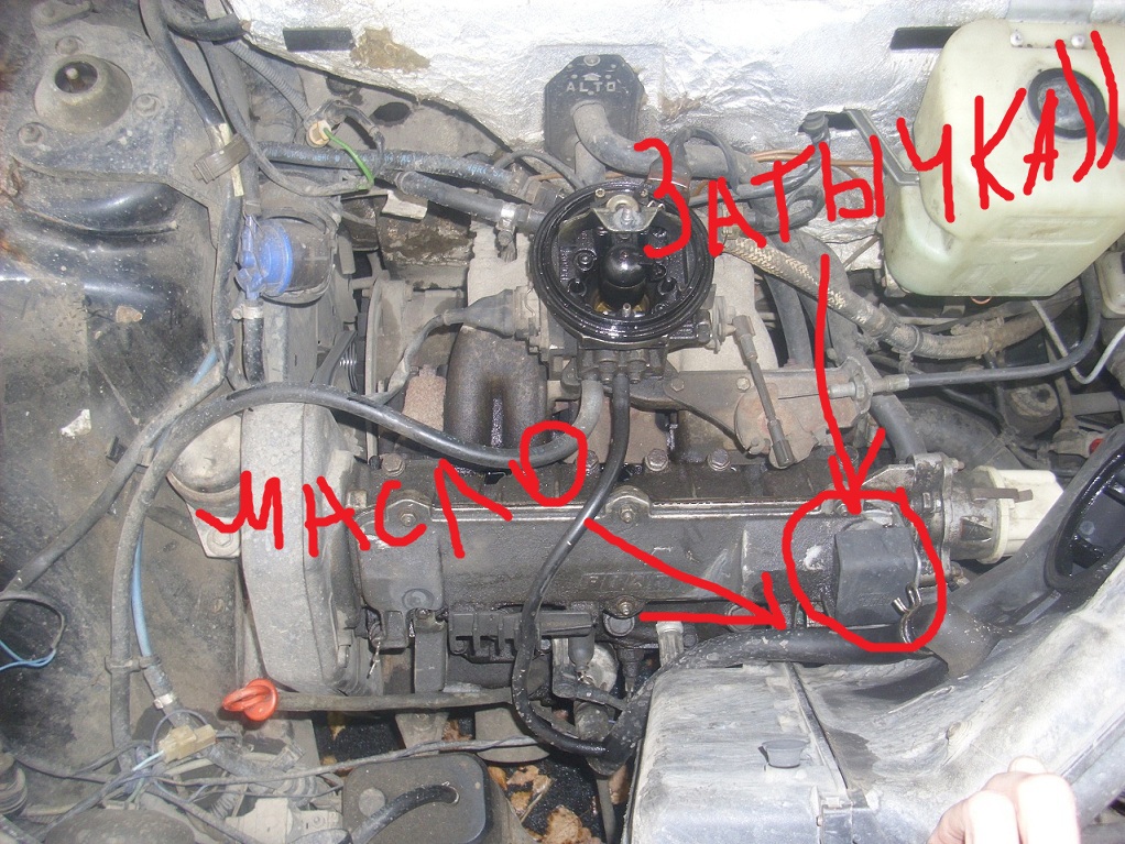 Ещё движок весь в масле думаю из под этой крышки-затычки выбрасывает(((