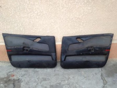 Примеряя на свою возникло пару проблем по установке.Первое это ручки открытие дверей,на фото все видно и передние карты по высоте чуть больше чем старые,задние карты подошли четко как родные только опять же вопрос с ручками открытие дверей.Карты не сказал бы что в хорошем состоянии,но все же буду переделывать и ставить их,сначало надо все подогнать и решить с ручками открытие дверей,как все будет сделано,будут перешиваться.