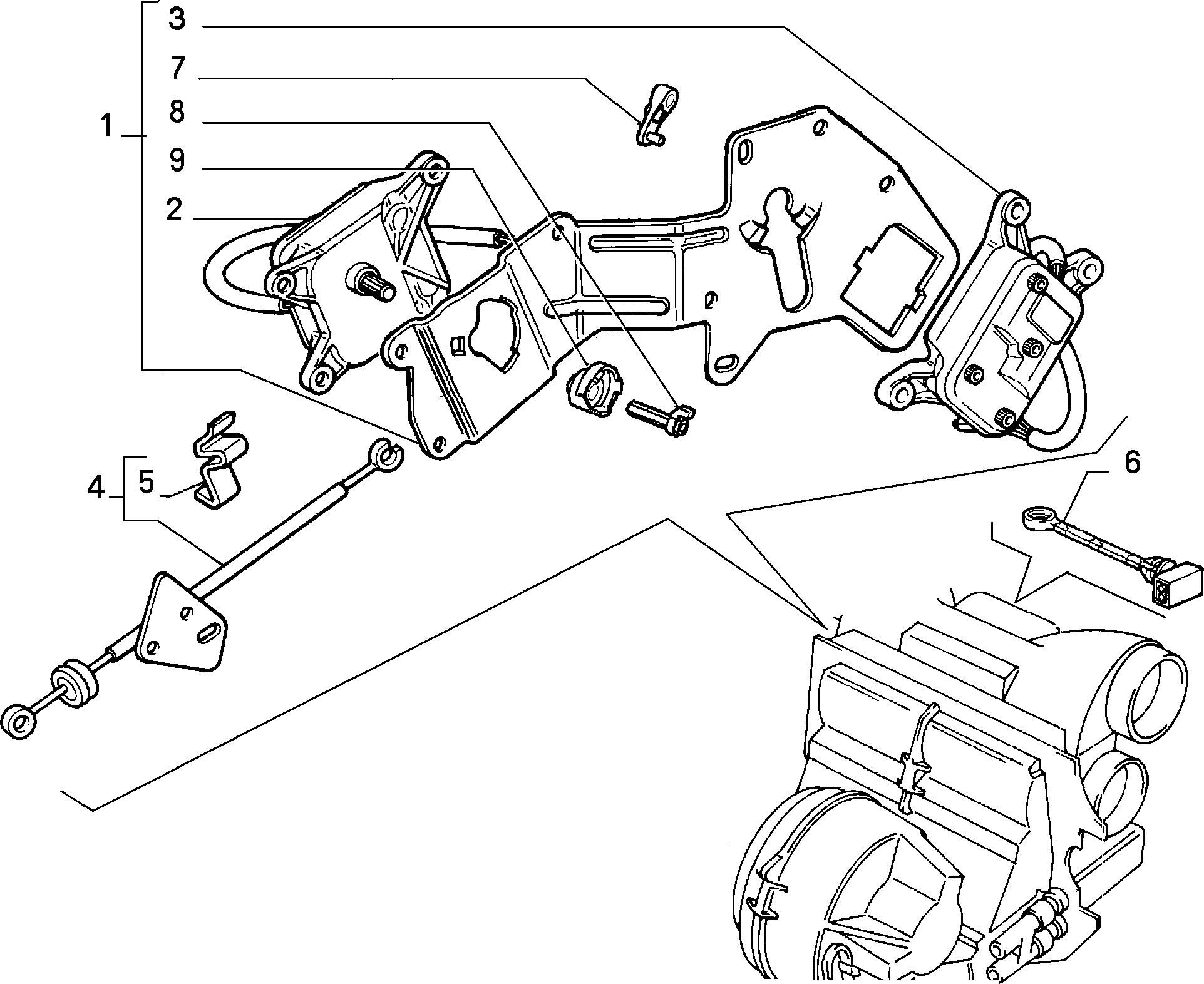 1. Моторчик положения заслонки обдува воздуха для климат-контроля без кондиционера (Bosch 0 132 801 008 ) - на рисунке деталь под номером 2.