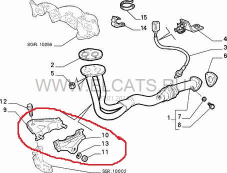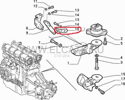 Крепление выхлопной трубы к подушке двигателя.