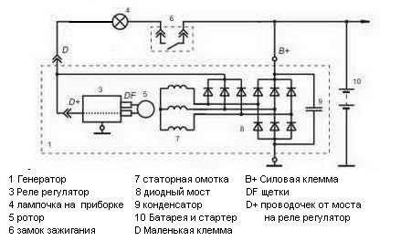 за регулировку сцепы спс, буду пробовать, за возбуждение уже почти понял, сам балбес, надо было схему смотреть, но её тогда ещё у мя небыло,увы) У мя диодный мост такого плана , Д+ это я так понимаю возбуждение?