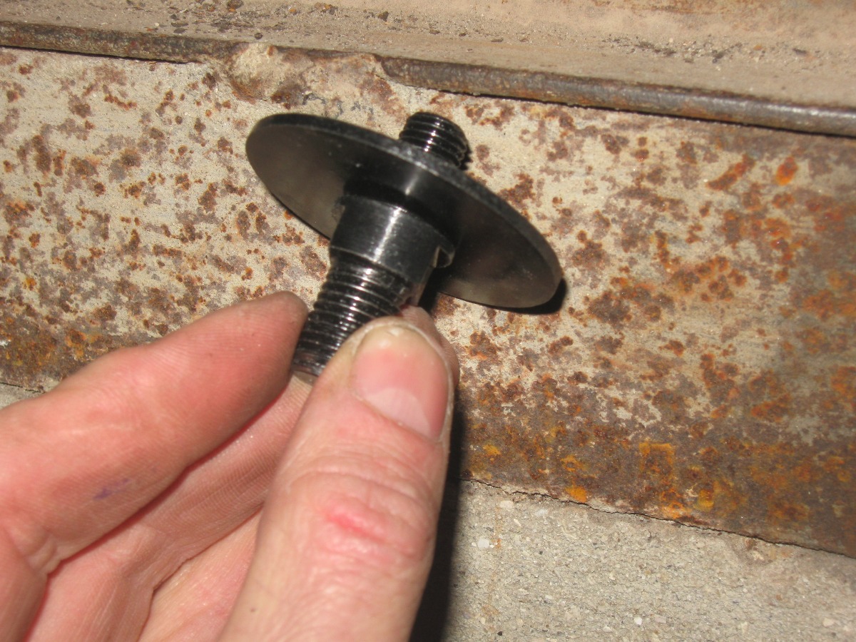 Пришлось болгаркой обрезать опорную тарелку по периметру,затем выламывать остатки вокруг болта с круглой шляпой,нарезать на ней лыски и выкручивать рогатой разводягой.