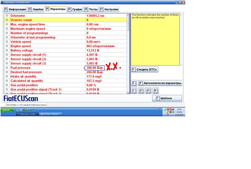 Ссмотреть надо давление топлива а не газойля. У меня заводилась при достижении давления 122-130 bar(атм.)см.рис. Люди говорят что нужно 140.