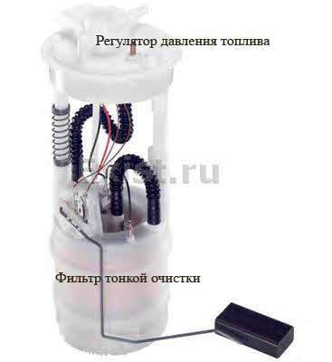 Фильтр тонкой очистки встроен в арматуру бензонасоса. Вынимаешь, снимаешь нижнею крышку и сливаешь скопившееся в нем дерьмо, покачивая из стороны в сторону. Затем опять наполняешь и сливаешь.