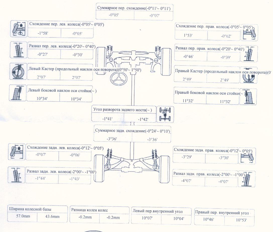 заднее правое колесо смотрит в право (если подойти сзади )и завалено немного ("стоит домиком"), это то что показал развал. Ниже приведу картинку. Во время столкновения удар пришелся как раз в колесный диск который погнуло. Был заменен правый рычаг на БУ,но ситуацию это не спасло. Ездил к рихтовщику он сказал что лонжероны в порядке. Подскажите, судя по картинке, что не так, что нужно заменить