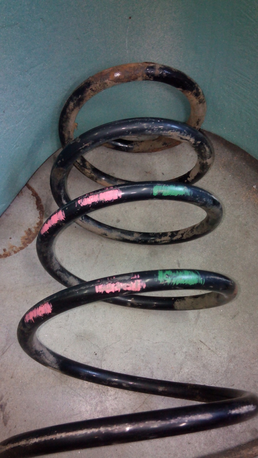 Собсна ищутся пружины в хор. Состоянии. На моих метка- 2розовых и 1зеленый мазок, фото прилагаю. Не обязательно прямо с такими же метками. Просто нужно от машины с мотором 1,9. 093-161-68-24