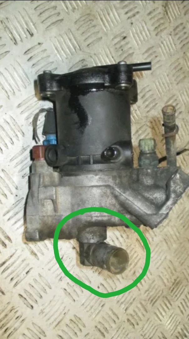 Доброго времени суток! Может кто что посоветует, или у кого то такое случалось. Фиат Скудо 1,9тд течёт металлический уголок под корпусом термостата (зелёным обведен на фото (фото не моё)). Практически насквозь проржавел. Чем заменить, или что подходит. Размер посадочного места в корпусе термостата 21,6мм. И ещё вопрос он просто вставляется (или запресовывается) туда или садится на какой-то клей/герметик. Купить другой корпус термостата нет возможности. Спасибо!