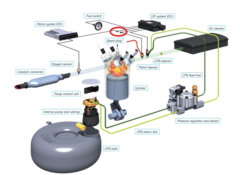 Касательно фразы "газовый мозг подключается в разрыв провода бензофорсунок", имел в виду то что обведено красным овалом на изображении. И что касается моих "глубоких" познаний ГБО на авто, спорить не буду, поэтому и ставлю вопросы, может не ясно высказываюсь.