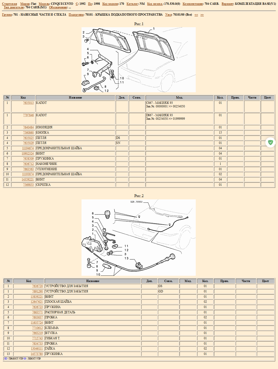 Может быть кто-то видел предохранитель на открытие капота у Seicento. Мне Фиат уже без этого устройства достался и на ходу капот открывается - очень неприятно получилось на трассе Киев-Чоп. Как он выглядит? Капот можно отрихтовать, а вот как этот предохранитель сделать - увидеть бы. Спасибо.