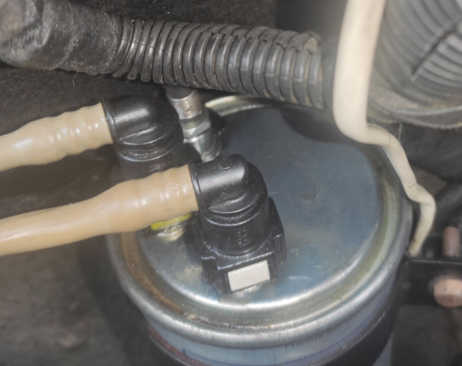 Можете повідомити марку паливного фільтру? І на ньому присутній зверху пластиковий "трійник"?