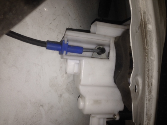 итак, вырезаем лобзиком дырку под нее, отступ от выштамповки во внутрь, примерно 2 мм. дальше все в родные места, в замок тоже просто защелкиваем конец тросика. Не понятно почему она пришла в каком то кронштейне, тк ставится без него.