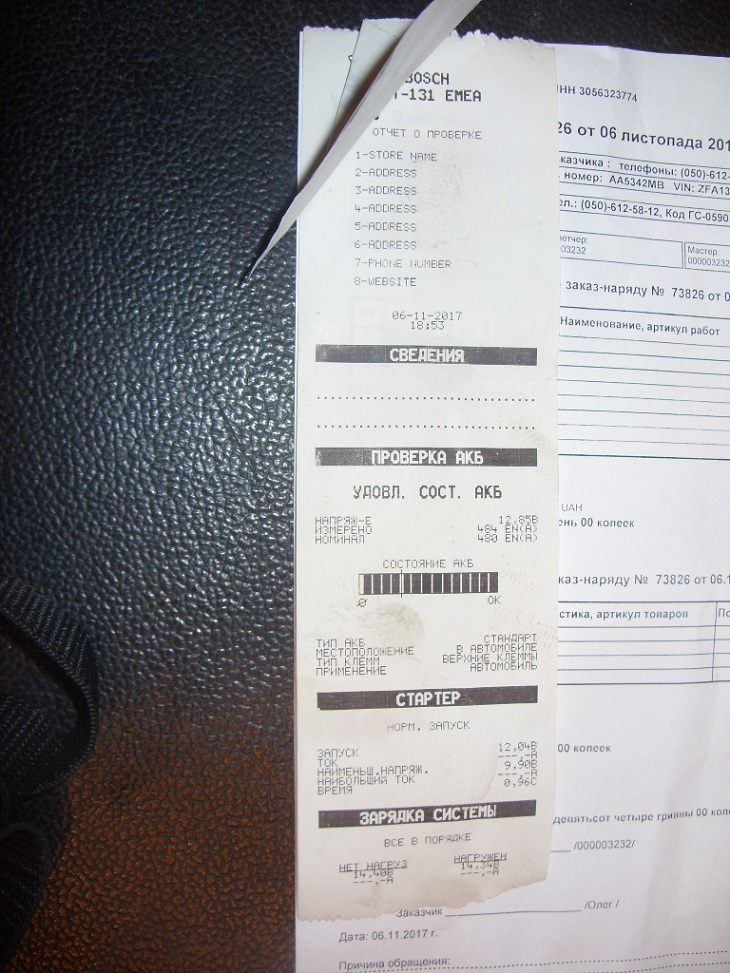 Вспомнил, что у меня есть распечатка с последней проверки АБ и генератора.