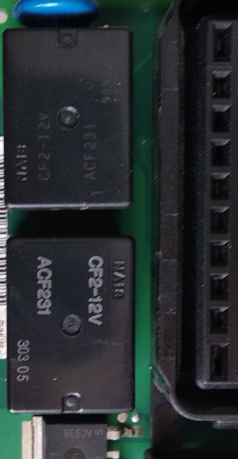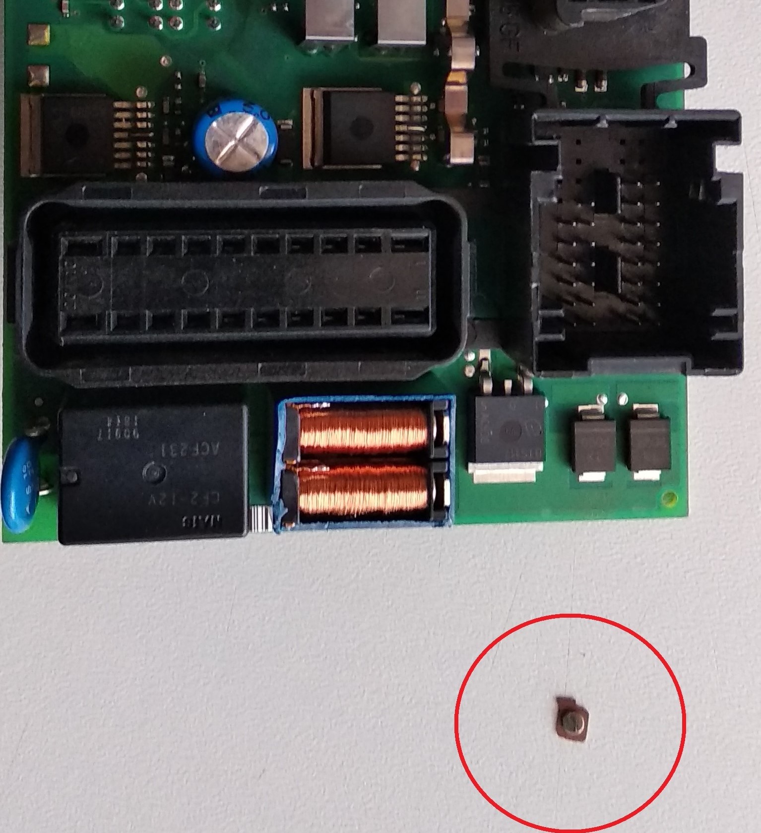 Отже, прочитаф форум і зняв комутаційний блок, що зліва під кермом. Вийняв плату управління, знайшов релє синього кольору і спочатку вскрив його.... а звідти випав відломлений контакт... Причина КЗ стала ясною...