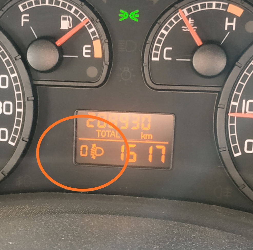 При включенні ближнього, біля цифр пробігу зліва, з'являється індикатор положення коректора фар, при включенні габаритів ні.