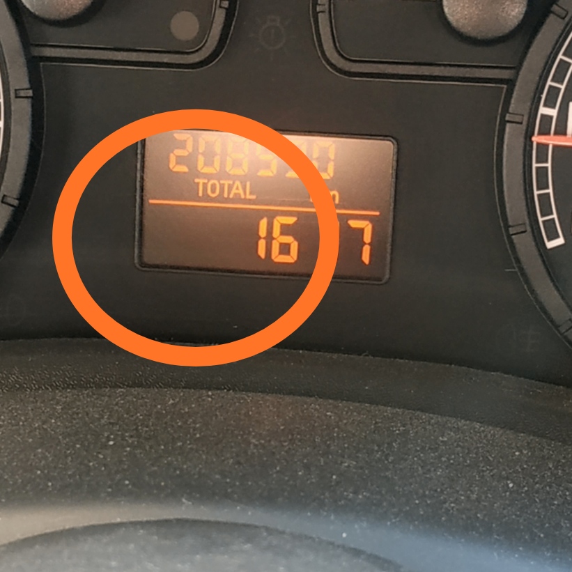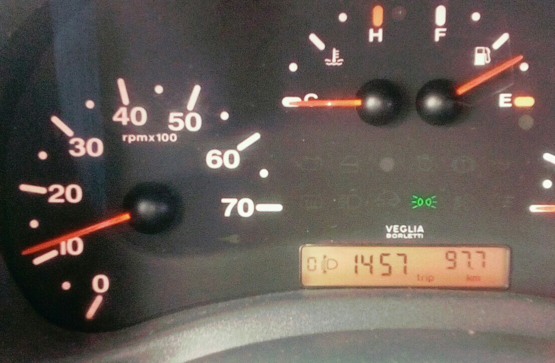 Дивіться нижче де пробіг, там індикатор положення фар по висоті, при габаритах нього немає, при ближньому є.