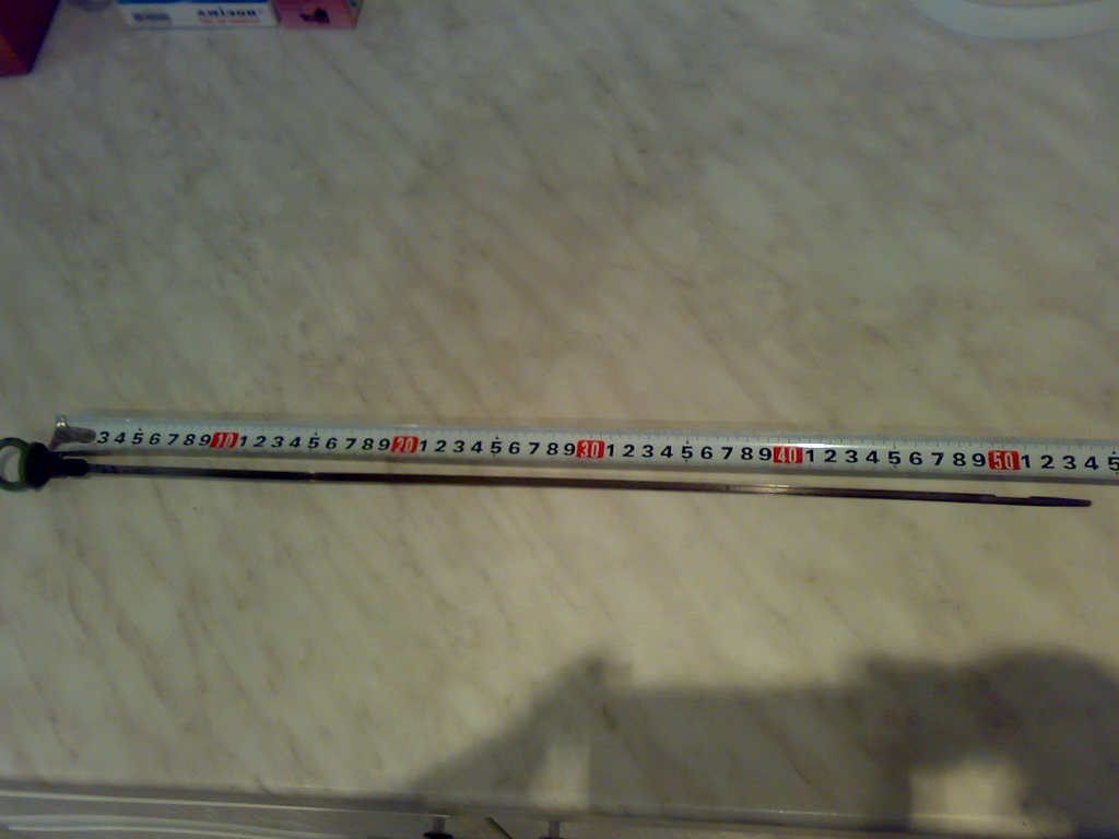 От основания ручки до конца щупа 53см. Масла влазит почти 6 литров (учтите сколько влазит в масляный радиатор со шлангами). В нетурбовую версию где-то 4,5 литра масла.