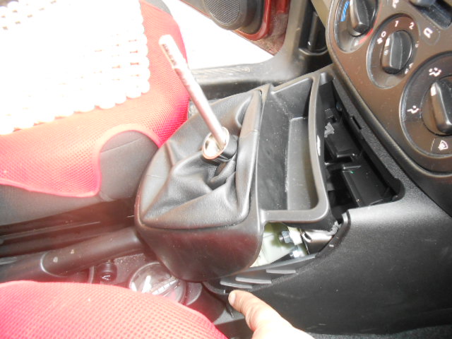 Далее лёгким движением отвёртки маэстро отщёлкнул защёлки пластиковой декоративной панели ручки МКПП (их там 4) и снял панель...