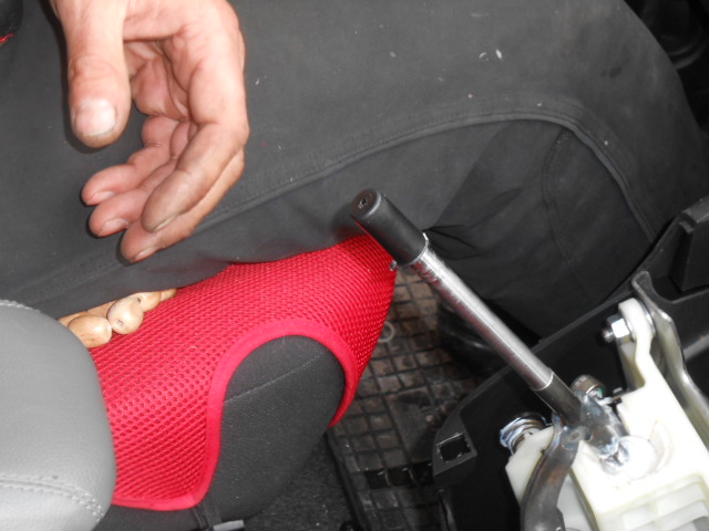 Потом мастер вернул на место снятую декоративную накладку МКПП и ловко надел сначала один из переходников, прилагаемый к универсальному набалдашнику ( надо смотреть, чтобы они были в комплекте), а затем навинтил и сам набалдашник, закрепив её у основания четырьмя фиксаторами (тож были в комплекте)