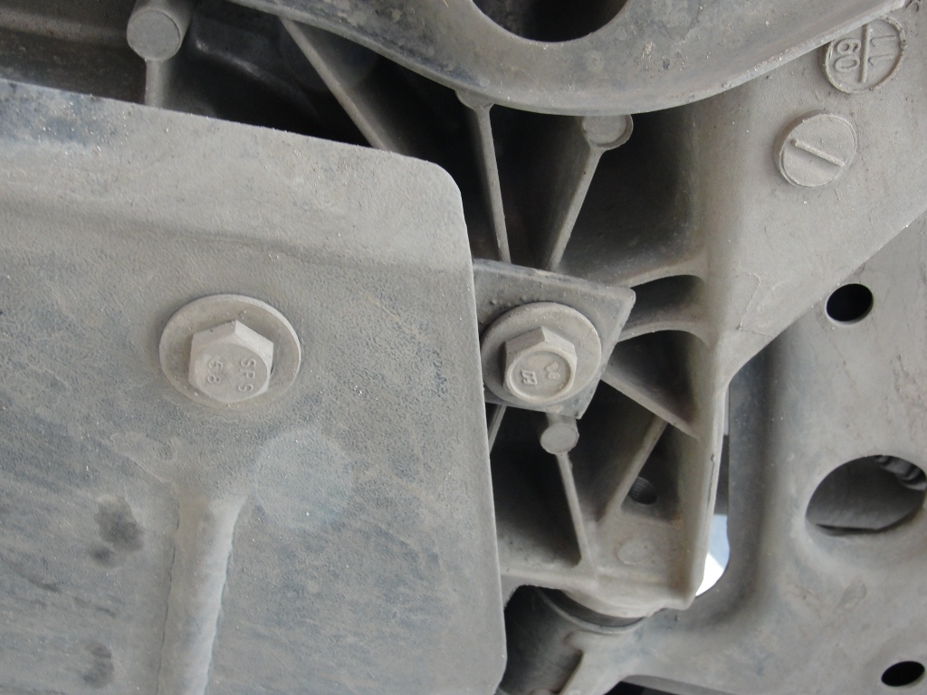 Спереду захист кріпиться трьома болтами до пласмасової планки, але вона достатньо товста щоб його утримувати. Ззаді два болта. Захист закриває все і в тому числі коропку передач. |