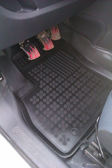 Пошёл на «резиновый» базар в БЦ, за 150 грн купил польский коврик с накладкой под левую ногу, пришлось порезать левый нижний угол и встал как литой, главное, особенно в зимнюю погоду от грязи защищена подставка под левую ногу. Родные протерлись до дыры под газом за 50 тыков, а польские не видять износу уже 85 тыков. Сфотаю и выложу на днях