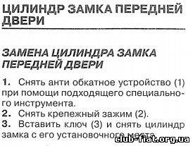 Снимаем ручку двери, с внутренней стороны нашему взору представляется белая пласмасянка с прорезями, выламываем верхнее кусок пластмассы, там где три прорези (она прячет стопорное кольцо и служит как бы пломбой) и уже потом отверткой вытаскиваем штопорное П-образное кольцо, вставляем ключ в личинку, проворачиваем примерно на треть и вытаскиваем личинку наружу. Вот и все, писаныны больше чем дел!