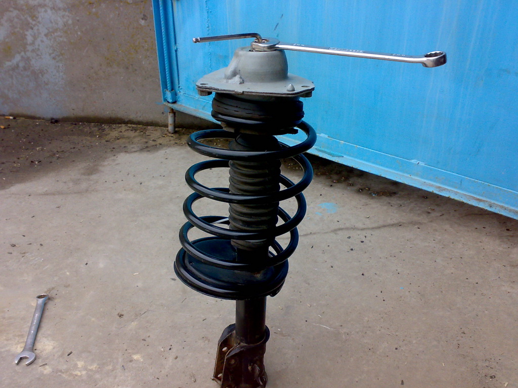 ЗЫ: сначала на установленной на машине стойке отпустить гайку штока!