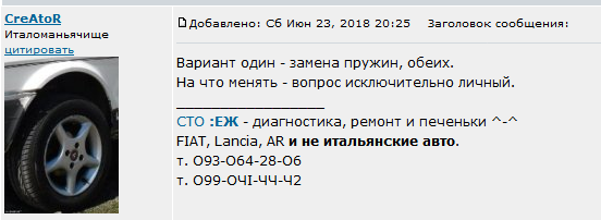 Так что, перед тем, как кого-то стыдить, посмотрите в зеркало _________________ СТО Fiat: пн-птн с 9.30 до 18.00, суб с 9.30 до 15.00. Оригинальные запчасти.