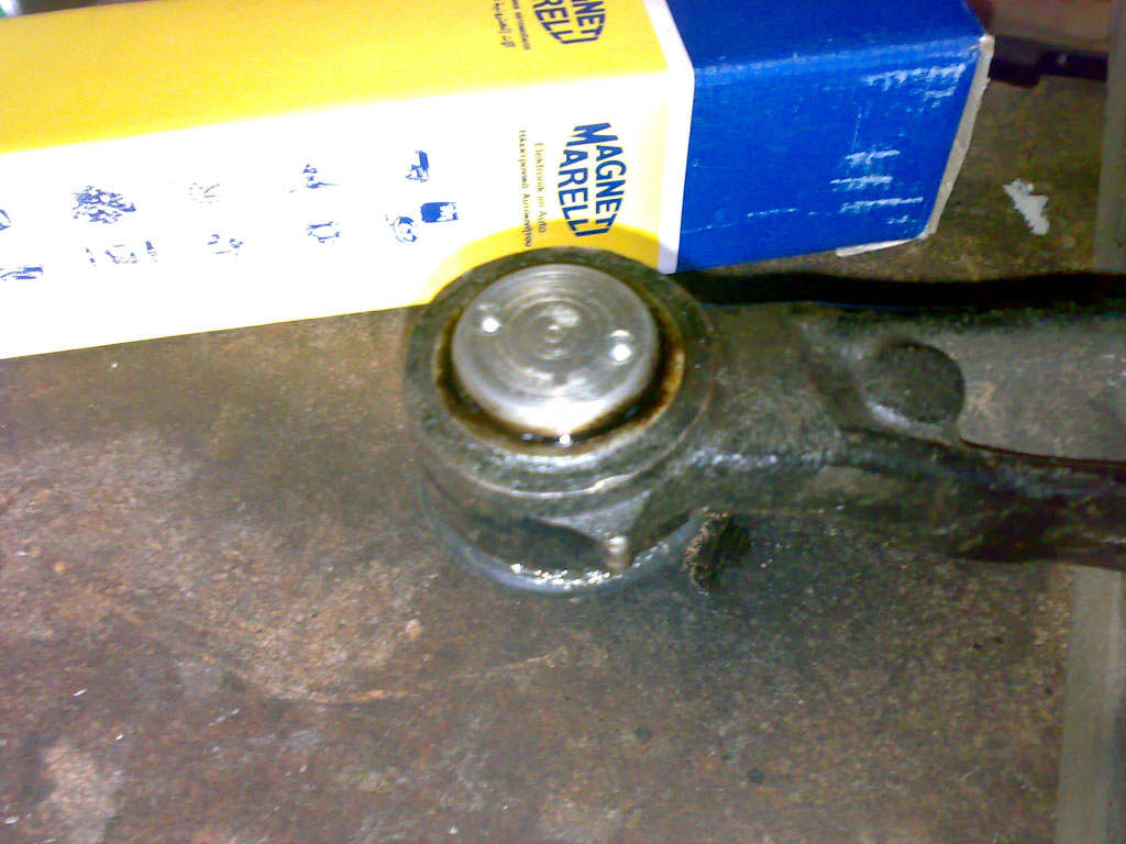 На авто рынках продают комплект типа для Жигулёвских разборных шаровых - он состоит из цилиндрической гайки и вкручивающегося в неё "блина" со шлицом + сухарик под палец (может не совпасть внутренний диаметр шайбы). На своём рычаге обрезается болгаркой тыльная сторона шаровой и вместо неё вваривается гайка. В некоторых рычагах, в основном старых, между сухарём и тыльной частью производители ставили пружину, при этом её оставляешь и затягиваешь палец, потом фиксируешь "блин" либо керном, либо штифтом через отверстие. Если нет пружины, подкладывается либо полиуретановая, либо из маслостойкой резины шайба. |