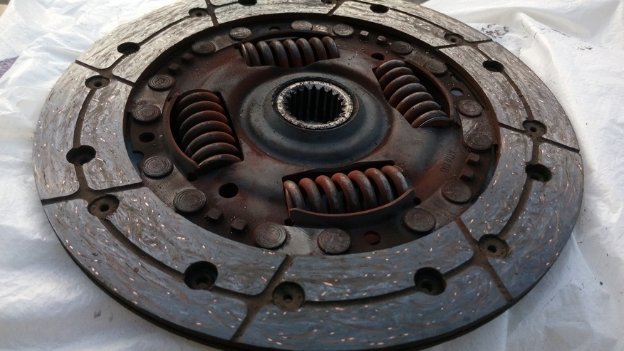 3 На ведомом диске пружины целы все, фрикционные накладки изношены, но не до заклёпок.
