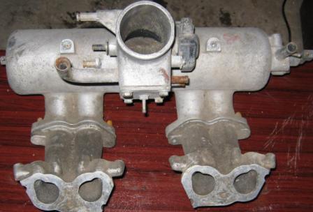 Форсунки были неисправные, из за етого принял решение переделать на карб. Остались: 1)ресивер с дросельной заслонкой, 2)два маленьких коллетора 3)извините за неграмотнось но незнаю как называется деталь, стояла она между дросельной заслонкой и воздушным фильтром чорная коробка через какую проходил воздух(BOSCH).