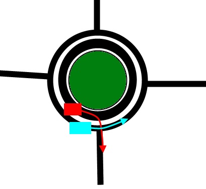 тут вопрос однако спорный...берюзовый для движения по кольцу дллжен был стать во второй ряд для движения по кольцу а вот красный в первый ряд для поворота