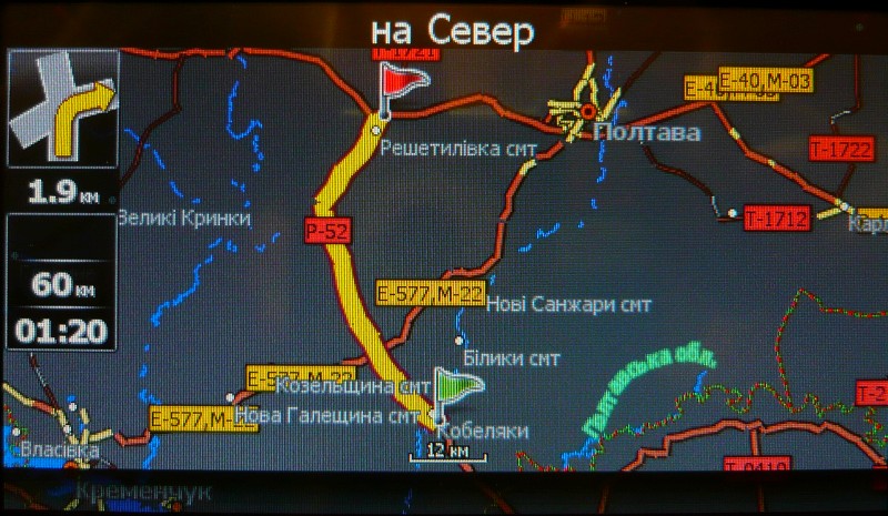Где упоминание за поворот на Кременчуг? Very Happy Это во первых. А во вторых, конченная дорога начинается не от поворота на Кременчуг, а от въезда на Полт. обл., собственно где я и установил зеленый флажок. А это действительно за несколько клм. перед Кобеляками, считай уже сами Кобеляки.