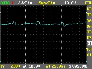 Я вижу, что на осцилограмме уровень задан порядка 10.5В. И относительно него подаются периодически сигналы (частота порядка 60 герц) с амплитудой порядка 1В.