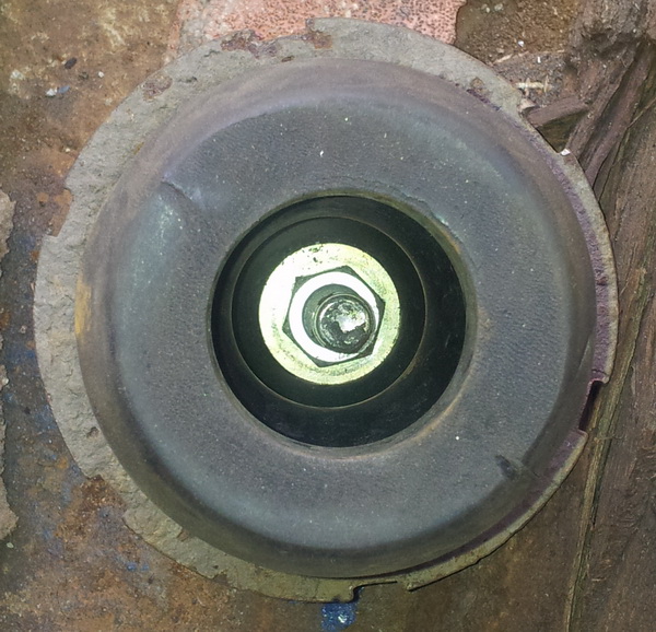 | Одеваем отбойник на болт и садим обточеной стороной в чашку |